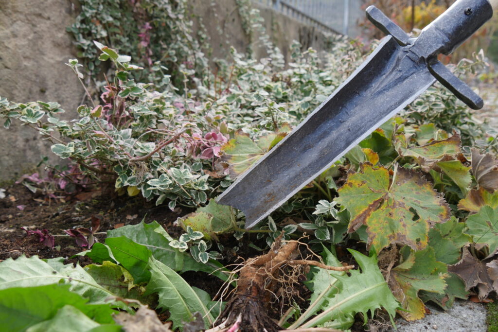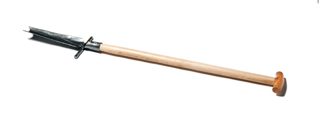 Hârleț special pentru scos buruieni. Este forjat manual dintr-o bucată de oțel, având greutatea de 1200g. Este prevăzut cu treaptă pentru picior și coadă în T din lemn de frasin de 85 cm.